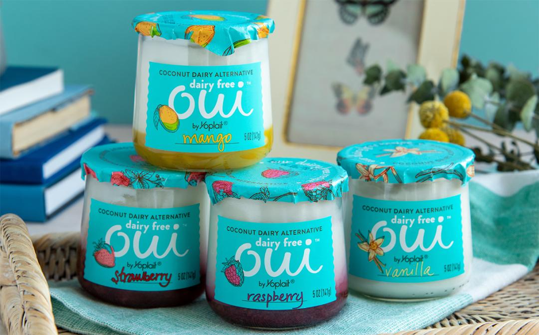 2019年12月,通用磨坊旗下Yoplait品牌推出了一系列以椰子基为原料的植物基酸奶,并配以芒果、覆盆子、草莓和香草四种口味,Oui 酸奶的特别之处在于包装。
