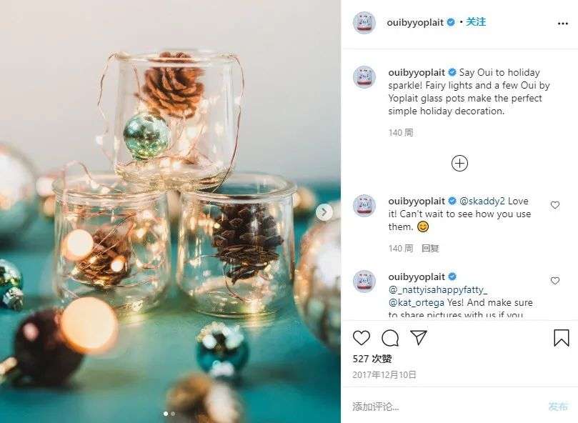 Oui的玻璃罐被DIY成圣诞装饰,图片来源:Oui by yoplait