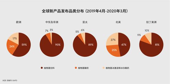 植物基新产品在全球各个地区的比例,图片来源:Mintel《2020:植物基饮料、酸奶及冰激凌创新年》