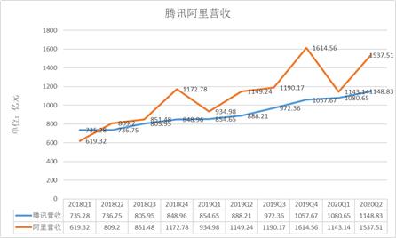 图:阿里、腾讯2018年以来的营业收入