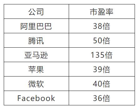表:腾讯、阿里、苹果、微软、FB市盈率对比表(截止9月2日美股收盘)