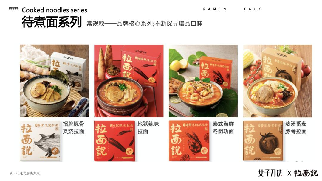 拉面说在做新一代速食的解决方案,品牌主旨是希望通过能媲美拉面馆的速食面产品,满足消费者对于这一特定品类的需求。