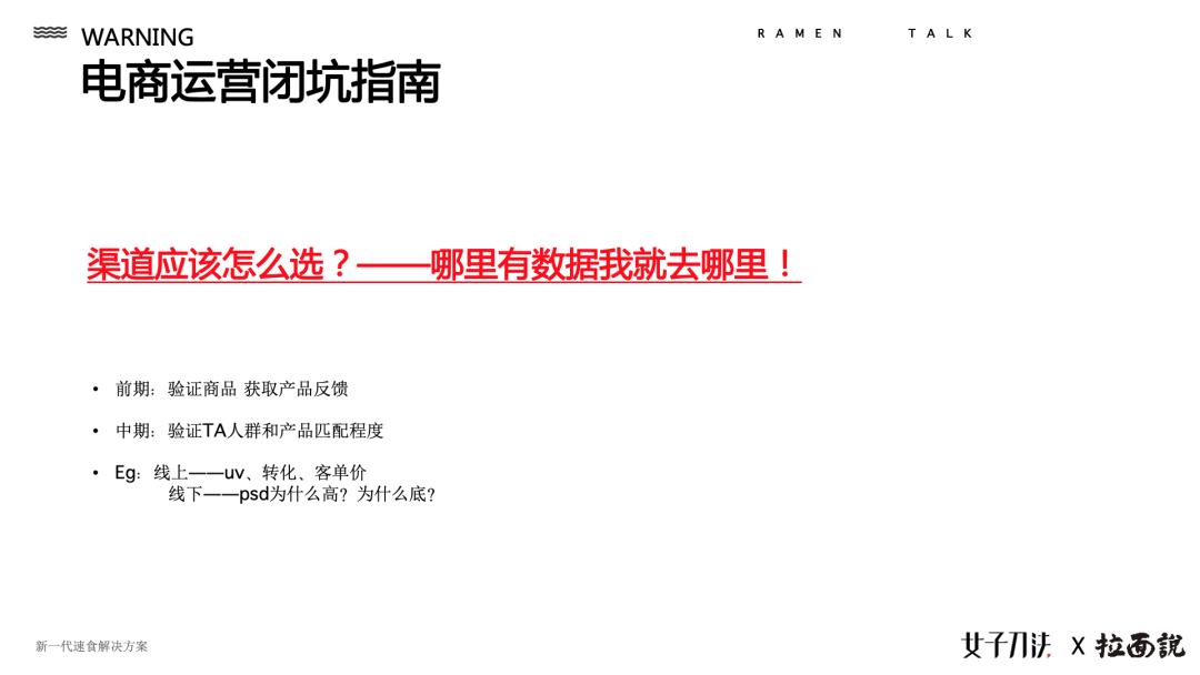 在产品验证阶段,拉面说在渠道上的策略有以下几条: