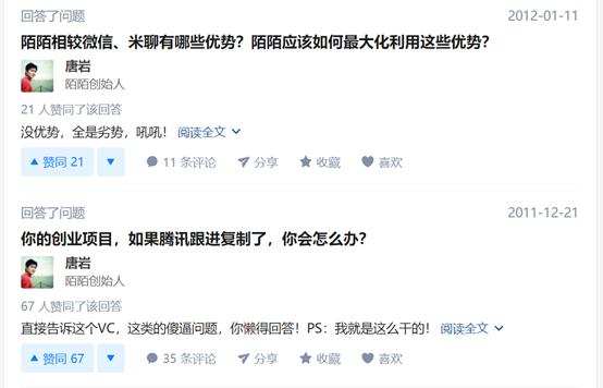 唐岩本人早年在知乎上的问答互动