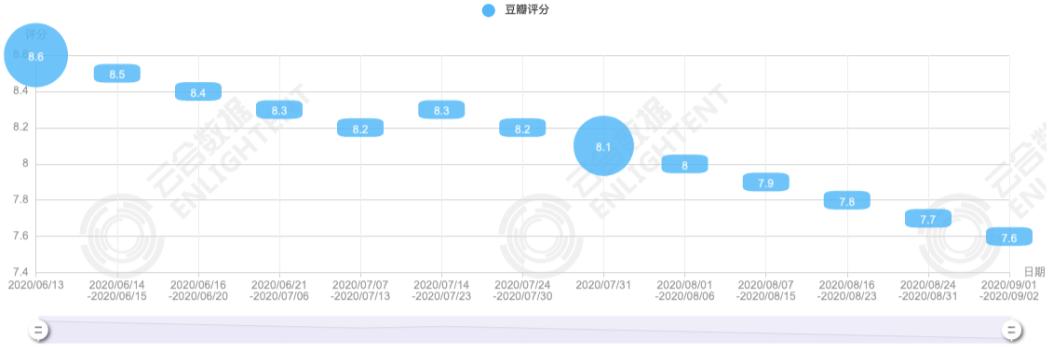 根据云合数据显示,《乘风破浪的姐姐》正片有效播放市场占有率及排名呈现出下降趋势,哪怕是正片更新之日,关注度也在打折扣;同样下滑的还有豆瓣评分,从前期开播的8.6到如今的7.6,从某种程度说明了节目在遭遇口碑危机。