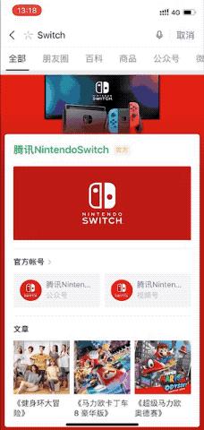 上微信搜索「Switch」或「健身环」,你会发现微信专门为其定制了一套呈现方式。
