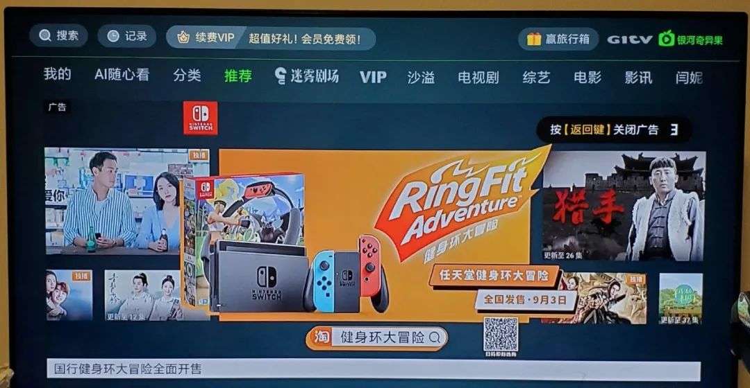 在9月3日晚,我玩了半个小时《健身环》。之后打开奇异果 TV 准备刷剧之际,居然在这碰上了它的广告。