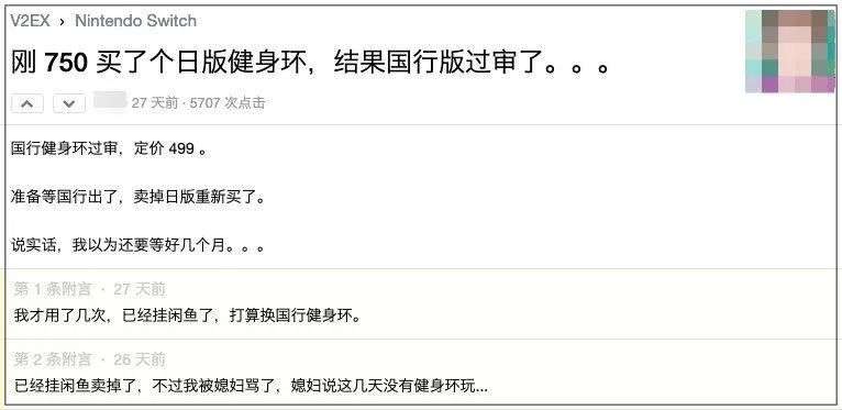 一名 V2EX 上的网友为了国行版卖掉了日版健身环