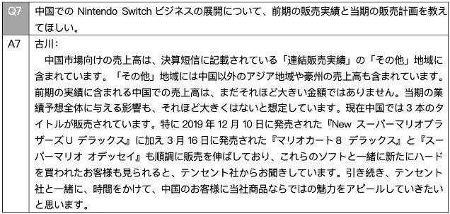 国行占比相信不会太高。因为在今年5月份,任天堂社长古川俊太郎曾表示,国行 Switch 在 Q1 季度的销量不是很理想。