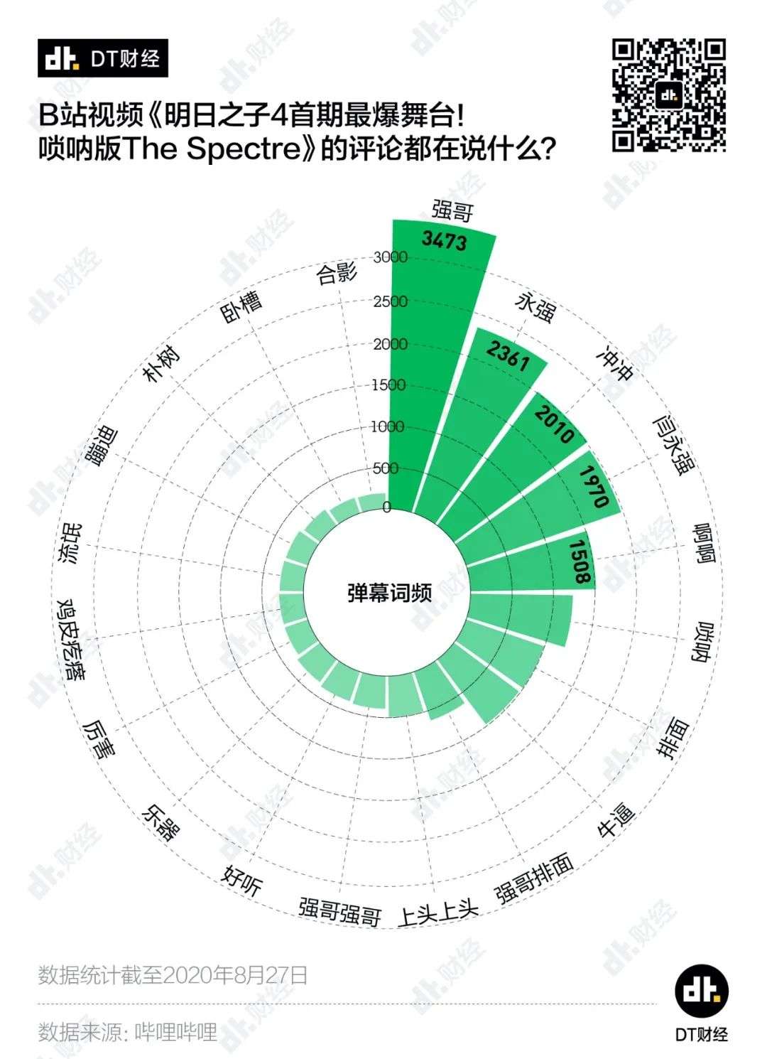 这条视频共有超过2.3万条弹幕,近2700条评论。年轻观众们用“强哥”“啊啊”“冲冲”“上头上头”来表达对这段音乐表演的喜爱。