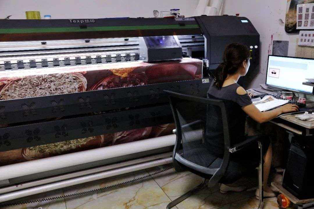 ▲最新的热软印技术:图案印在特殊的纸上,再通过高温高压转移到布面上。摄影:安舜
