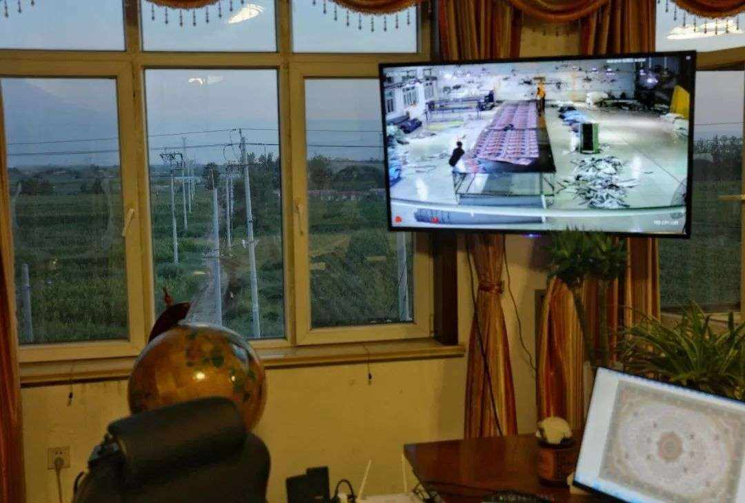 孙建友的地毯公司,位于崔黄口一座四层小楼,低层是厂房,中间是办公室,楼上是地毯展览厅。办公室墙上挂着一幅山水挂毯,书桌旁放着半人高的地球仪,窗边的显示器监控厂房动态。窗外,村落隐藏在茫茫绿色中。