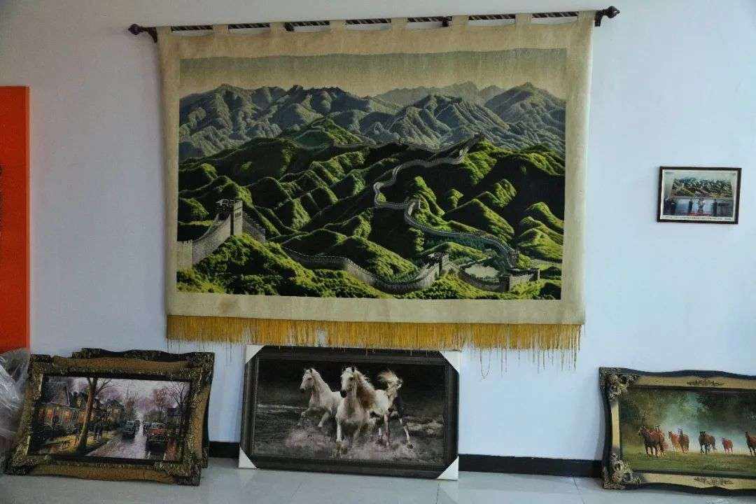 这一年,中国给联合国气象组织总部赠送了一块“长城壁毯”。原产地崔黄口镇开始为外界所知。这块壁毯至少要编织3个月,生产之前还制作了几幅样品。前几年,孙建友专门收藏了一块,挂在自家的地毯展览厅。有人想20万买下,他还不同意。