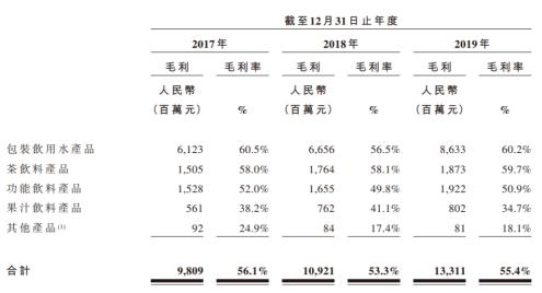 直到前几天准备上市,披露招股书,大家才知道,原来农夫山泉年收入超过240亿元,而且毛利率60%、净利率20%,2019年净赚50亿,远超国内同行,可以说是赚得多,涨得快。