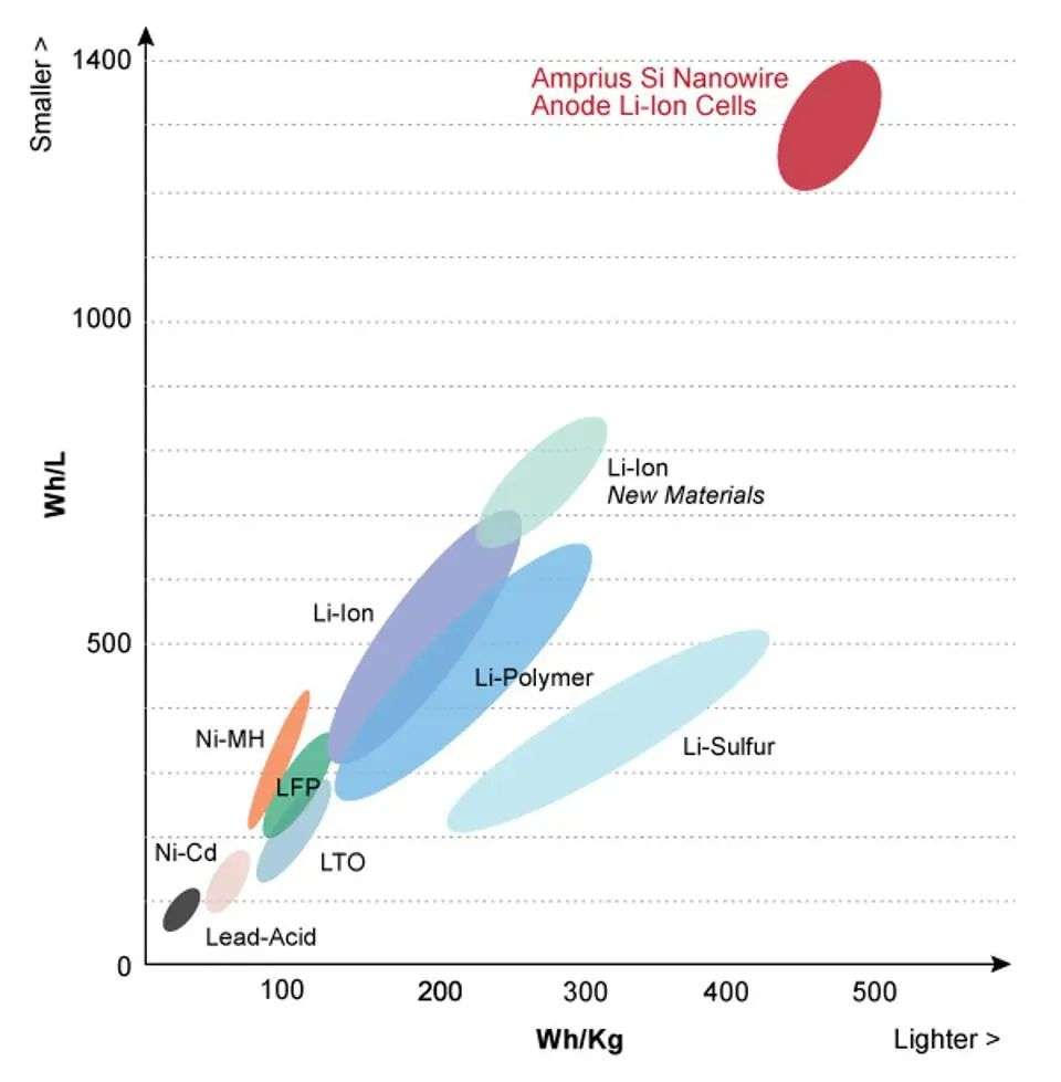 外媒报道称采用硅纳米线技术后,电芯的重量将会减轻一半,占用的空间也会是当前锂离子电池的一半,换言之就是,同样的电池体积和质量的电池组的能量密度会得到大幅提升,这就为更高能量密度的动力电池铺平了道路。