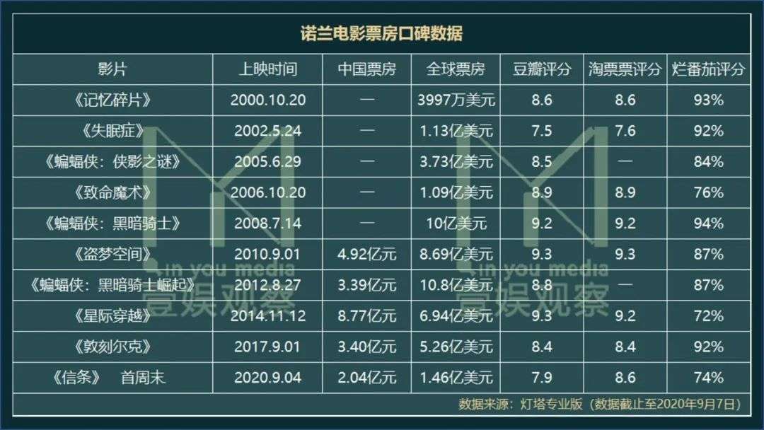 这是全球电影观众对“电影骑士”诺兰的认可,正如影迷对诺兰的定义——忠诚的电影骑士,无论是对电影艺术创作的不断探索,亦或者是对传统影院发行的无条件信赖,诺兰现象都值得被影迷追捧。