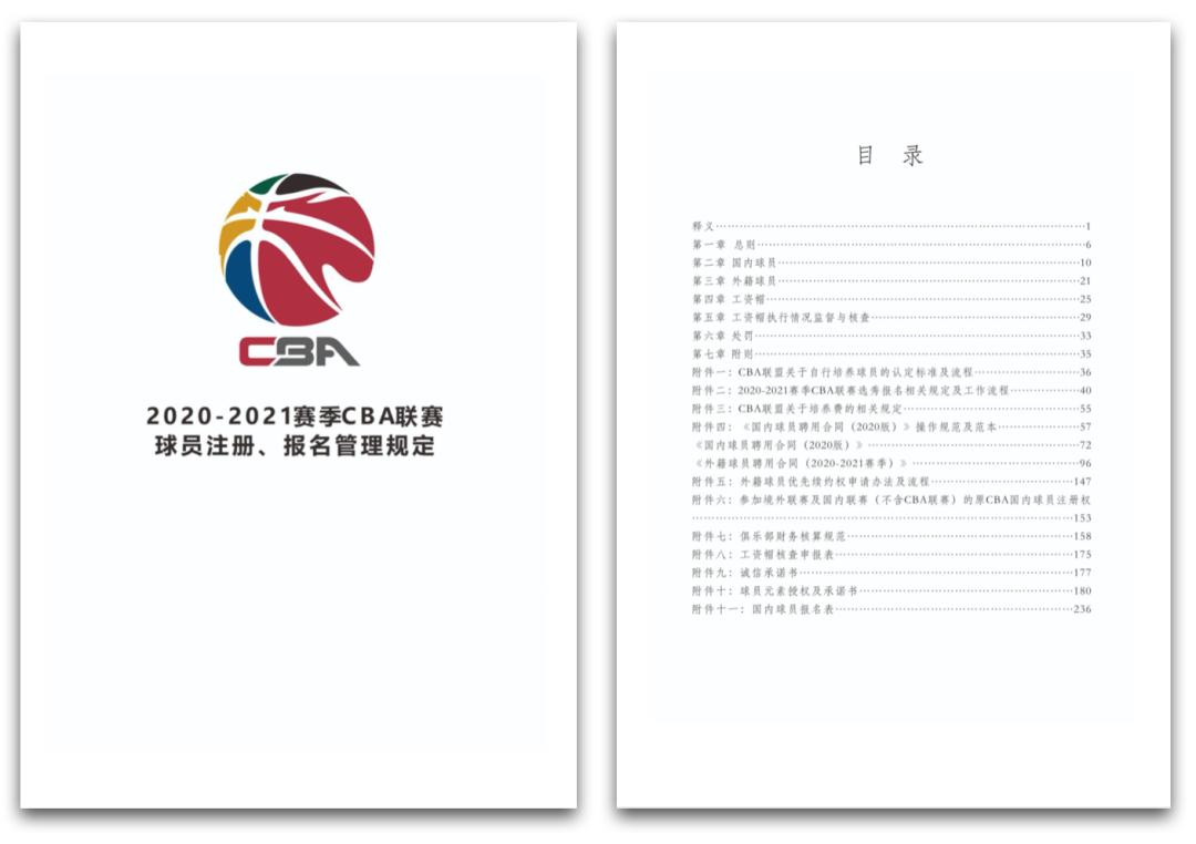 上个月底,CBA官方发布了一份长达238页的《2020-2021赛季CBA联赛球员注册、报名管理规定》(以下简称《规定》),对下赛季球员注册、薪资体系、外援以及球员流动等联赛各项事宜,制度了众多新的规章。