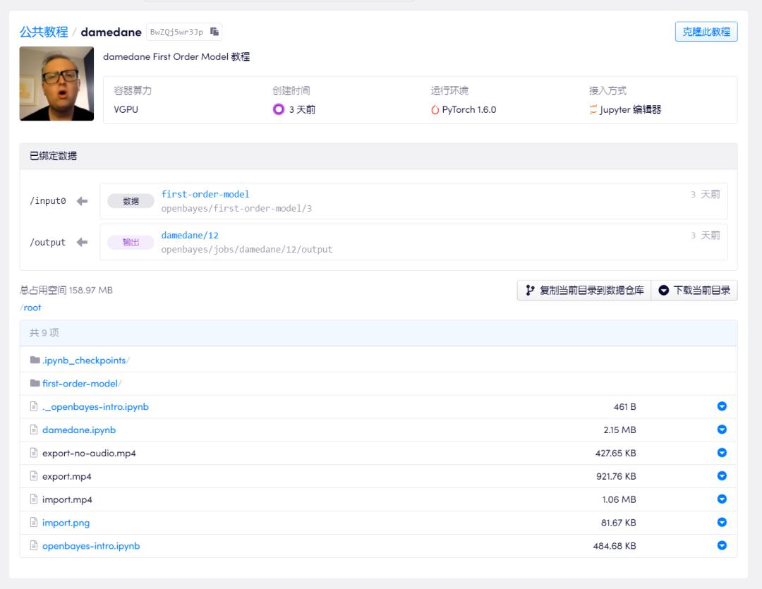 这个教学视频逐步讲解,即使是小白,也能轻松学会这招换脸大法。up 主还将 notebook 上传到了平台,只要一键 clone 就可以直接使用。