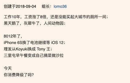 进入这个小组,映入DT君眼帘的,就是组长给大家留下的代表了全组精神意志的行动纲领。一句“今天,你消费 降级了吗”叩问着每个初来乍到的新人的灵魂。