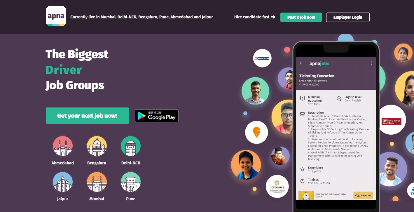 Apna 由 Nirmit Parikh 成立于2019年12月,总部位于印度班加罗尔,平台旨在帮助蓝领和灰领工人丰富职场技能、相互沟通,并寻找工作机会。蓝领是从事体力劳动的工人,灰领是技能型人才。