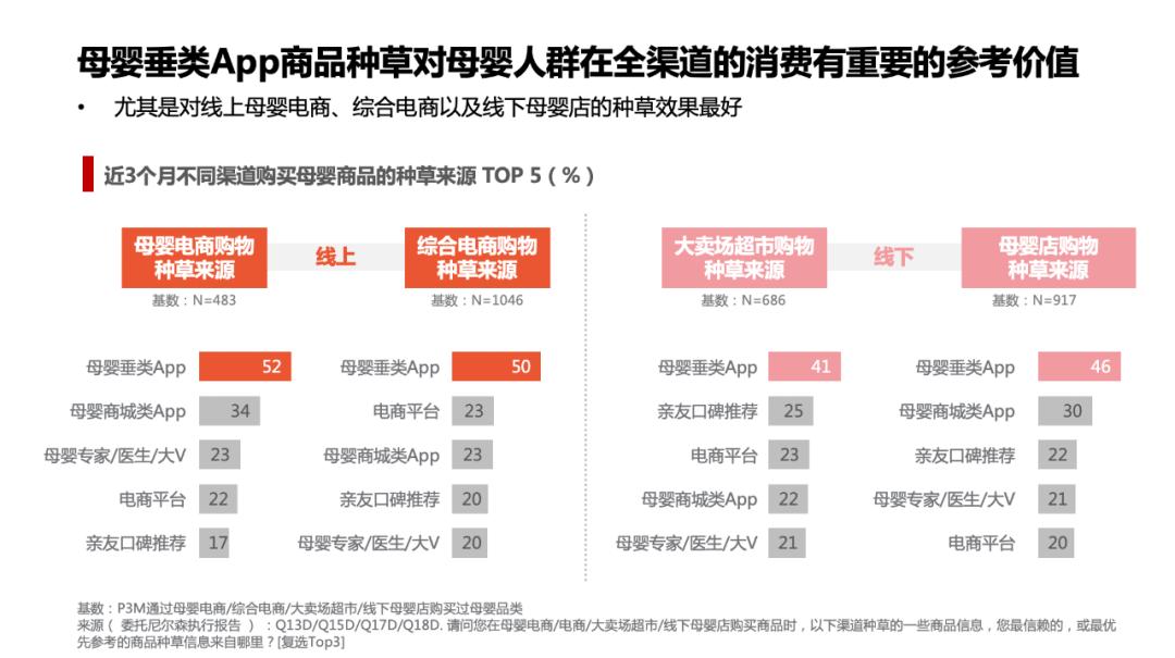 尼尔森调研统计同样显示,母婴平台的种草信息,对母婴人群在线上线下全渠道的消费参考价值位列第一。