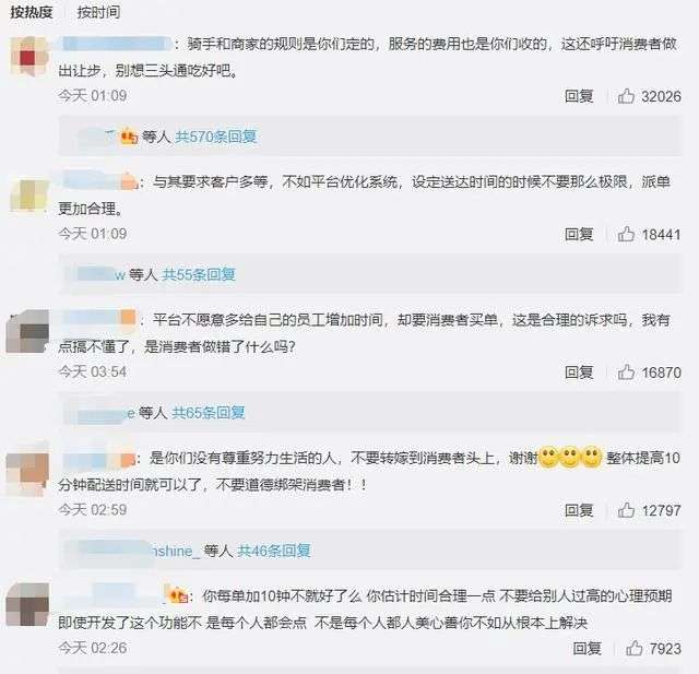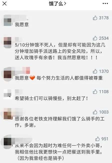 不过,也有网友质疑饿了么将责任转嫁给消费者。"骑手和商家的规则是你们定的,服务的费用也是你们收的,这还呼吁消费者做出让步,别想三头通吃好吧!"有网友表示。