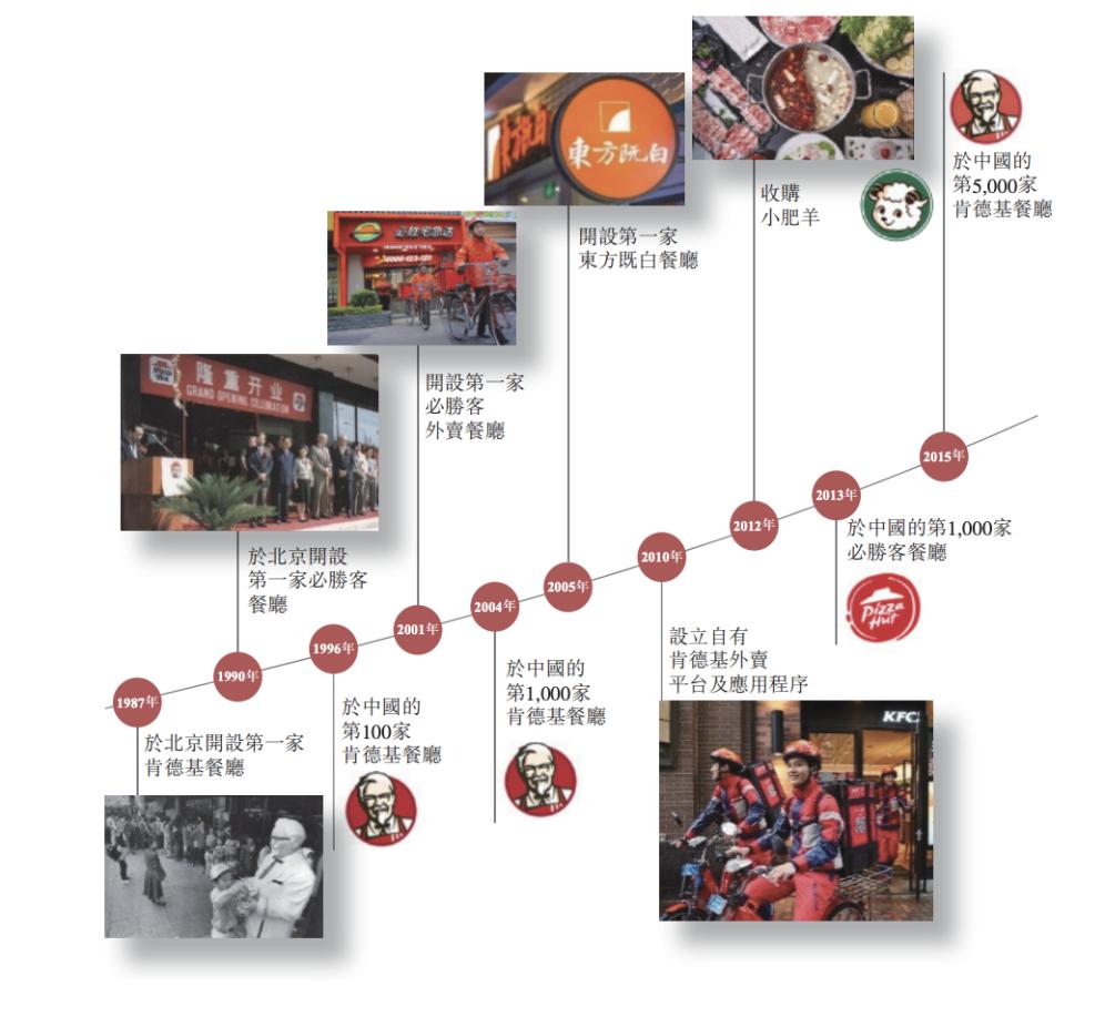 目前,百胜中国在中国市场拥有肯德基、必胜客和塔可贝尔三个品牌的独家运营和授权经营权,并完全拥有东方既白、小肥羊、黄记煌和COFFii&JOY连锁餐厅品牌。