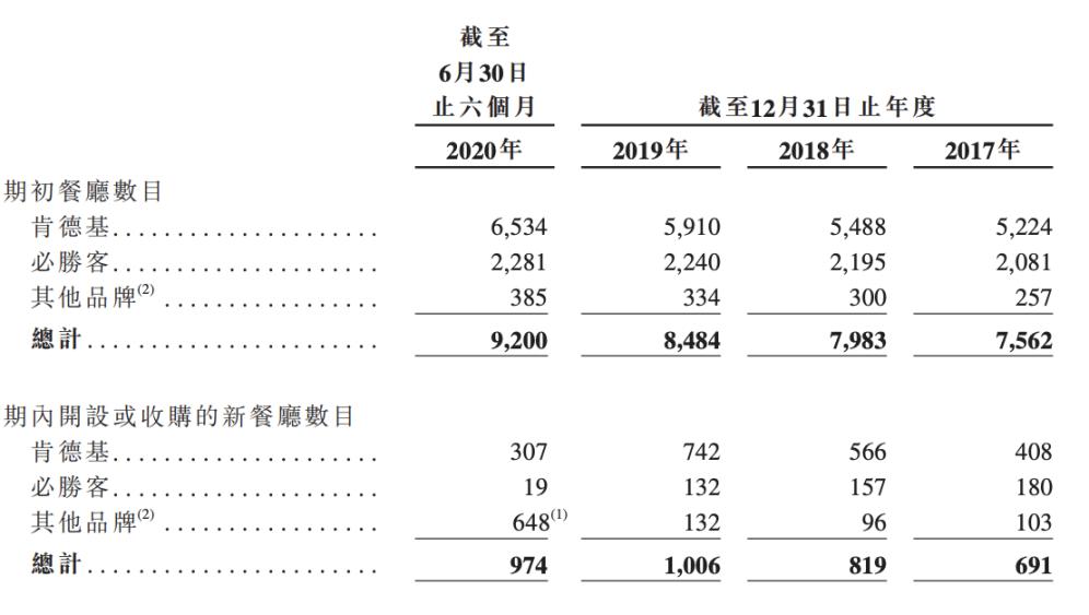 2018年、2019年,以及2020年上半年,肯德基开店数量分别为566、742、307家,必胜客在同期的开店数量则分别为157、132、19家。
