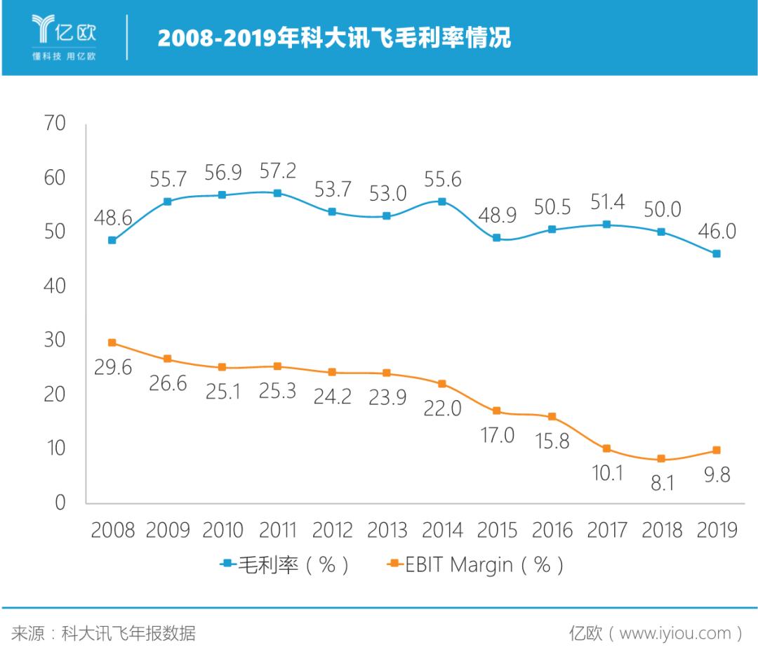 2019年,公司整体毛利率为46.02%,连续第二年下滑,2017年这个数字为51.38%。