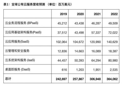云计算便成为一个不错的选择,它是目前疫情时期所有数字化活动的重要支撑动能。2019年包括基础设施即服务(IaaS)、平台即服务(PaaS)和软件即服务(SaaS)等在内的全球公共云服务市场总收入达到2427亿美元,预计2020年全球公有云服务市场将增长 6.3%,总额将达到 2579 亿美元。
