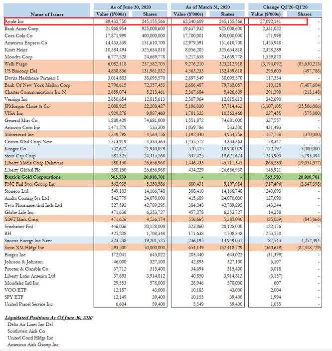 “截止今年二季度末伯克希尔持仓股中,科技股市值第一次超越金融,科技股总市值约占38.24%,金融股占35.22%...而在巴菲特持仓前十榜单里,苹果排名第一。”——公开数据