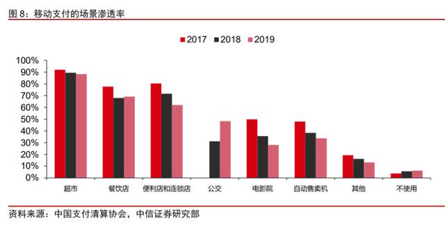 从中信证券的下述表格中也不难发现,第三方支付交易规模的同比增速在2017年后几乎直线下降。在流量存量市场中,下沉细分领域的争夺仍将持续。