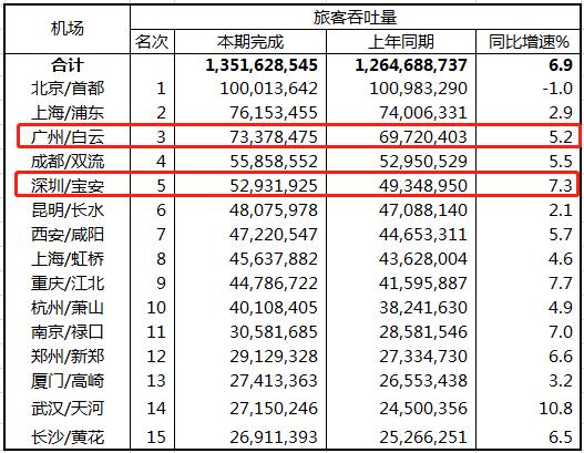 数据显示,2018年粤港澳大湾区机场群航班起降量约141万架次,旅客吞吐量超过2亿人次,超过全球三大湾区;2019年,内地机场旅客吞吐量排名前五,大湾区占了两席。