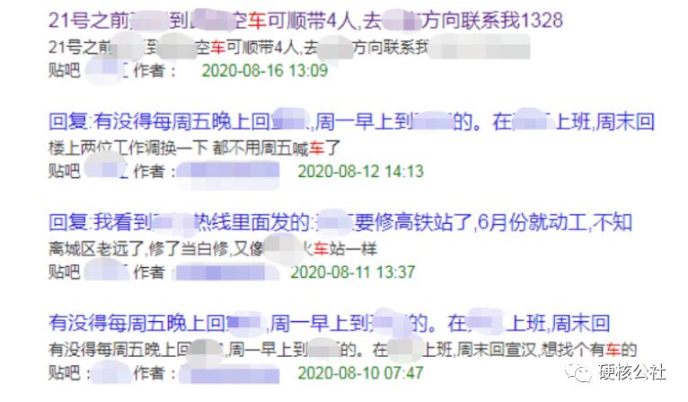 “今年春节由于疫情原因导致许多县城的公共交通都停运了,在贴吧上经常看到有人发帖求车,反正在家闲着也是闲着,索性就出去跑了两天赚点油钱”,欲国庆驾车从深圳回来的王波(化名)在贴吧回帖说到。在沟通中了解到,王波是季节性网约车司机,今年在春节期间也尝试过在县城用滴滴接单,但是滴滴没了顺风车,在县城来说一个人在滴滴上打车太贵了,开了两天一单都没接到,还不如在贴吧上发帖生意来得快。王波给记者算了一笔账,如果是几公里十多公里的短途,县里面的人会直接拦个出租车,如果是几十上百公里的长途,他们一般会找野的拼车,每个人怎么算车费都比网约车划算。