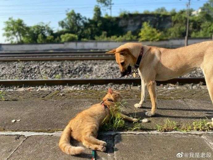 由于生活环境和养宠经历的多样化,老段的内容层次也较城市养宠人群丰富。他的工作单位在乡野间一个火车站,在车站他陆陆续续收养了三只猫两只狗,在城市的家里还养着三只法斗,猫猫狗狗怀孕生孩子、帮助走丢的狗找主人、车站下夜班后的景色、带狗在山里奔跑玩耍……2017年开始,这些场景组成了老段每条Vlog。