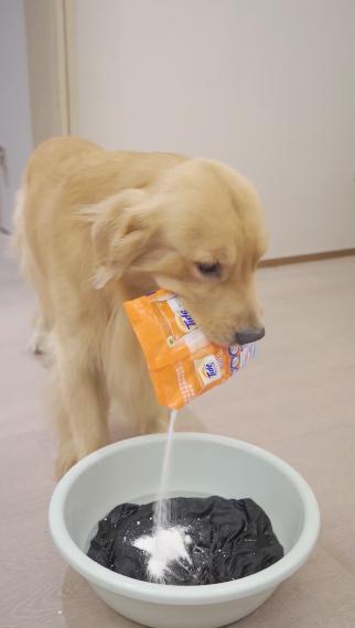 作为在短视频平台生态中成长起来的萌宠账号,其内容风格也极具短视频平台调性。在一则216万播放量的《狗狗自己在家会干什么》视频中,主人去上班时,路虎能“洗”衣服、自己盛狗粮,天气下雨后还会到小区门口给主人送伞。