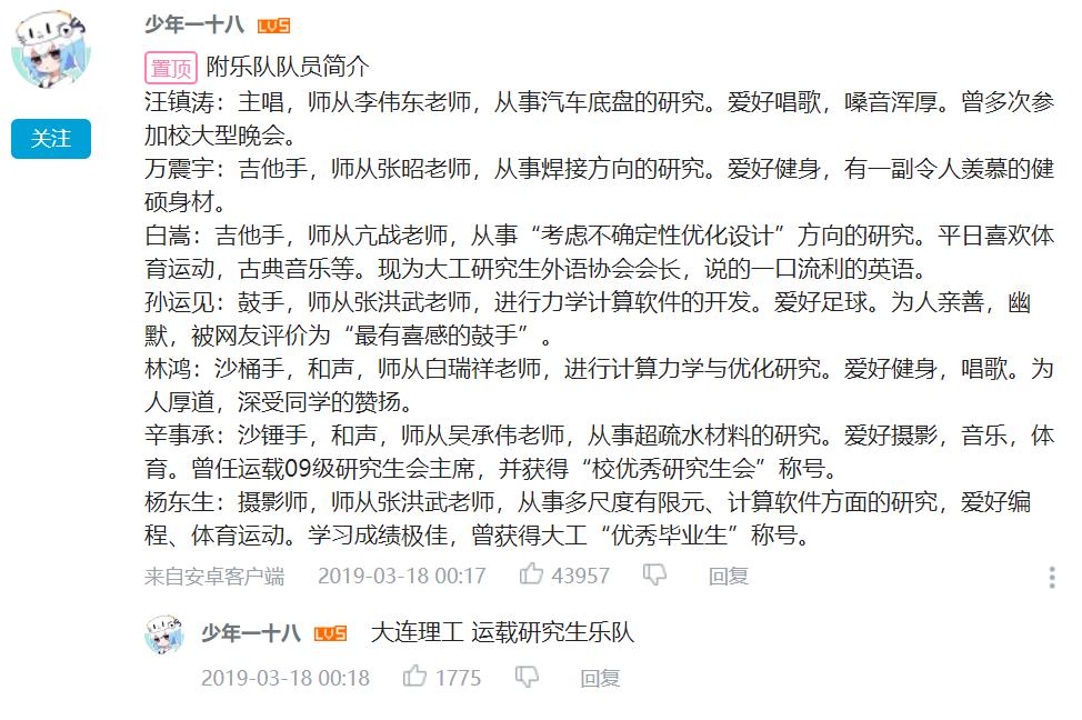 但置顶的评论告诉你,他们的主业,是研究汽车底盘、焊接、软件开发的,堪称"运载研究生乐队"。