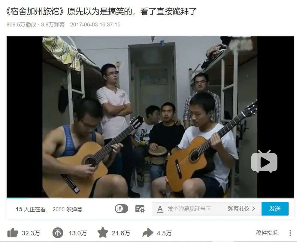 结果这曲宿舍版《加州旅馆》,在B站播放了860多万次,妥妥的现象级作品。