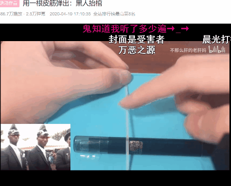 当黑人抬棺的名曲吹响每一处互联网角落之际,他也没有放过这首经典名曲,接着用一根皮筋弹出黑人抬棺: