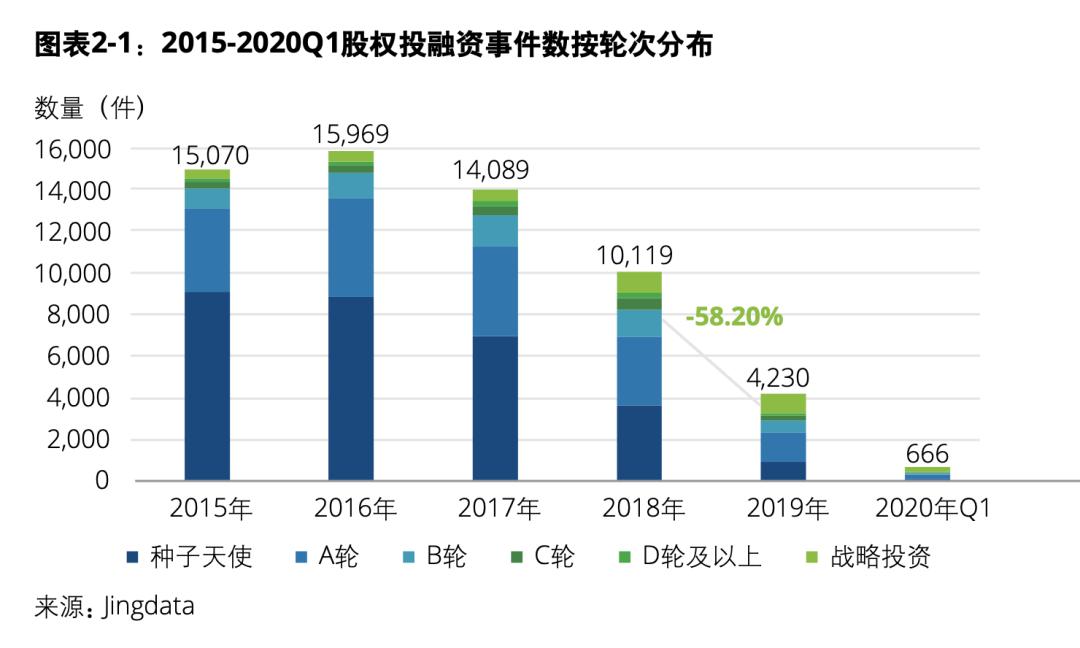 2019年开始投融资事件次数便断崖式下滑,2020年一季度事件总数更是惨淡。优质资源更加倾向集中于优质机构和项目。