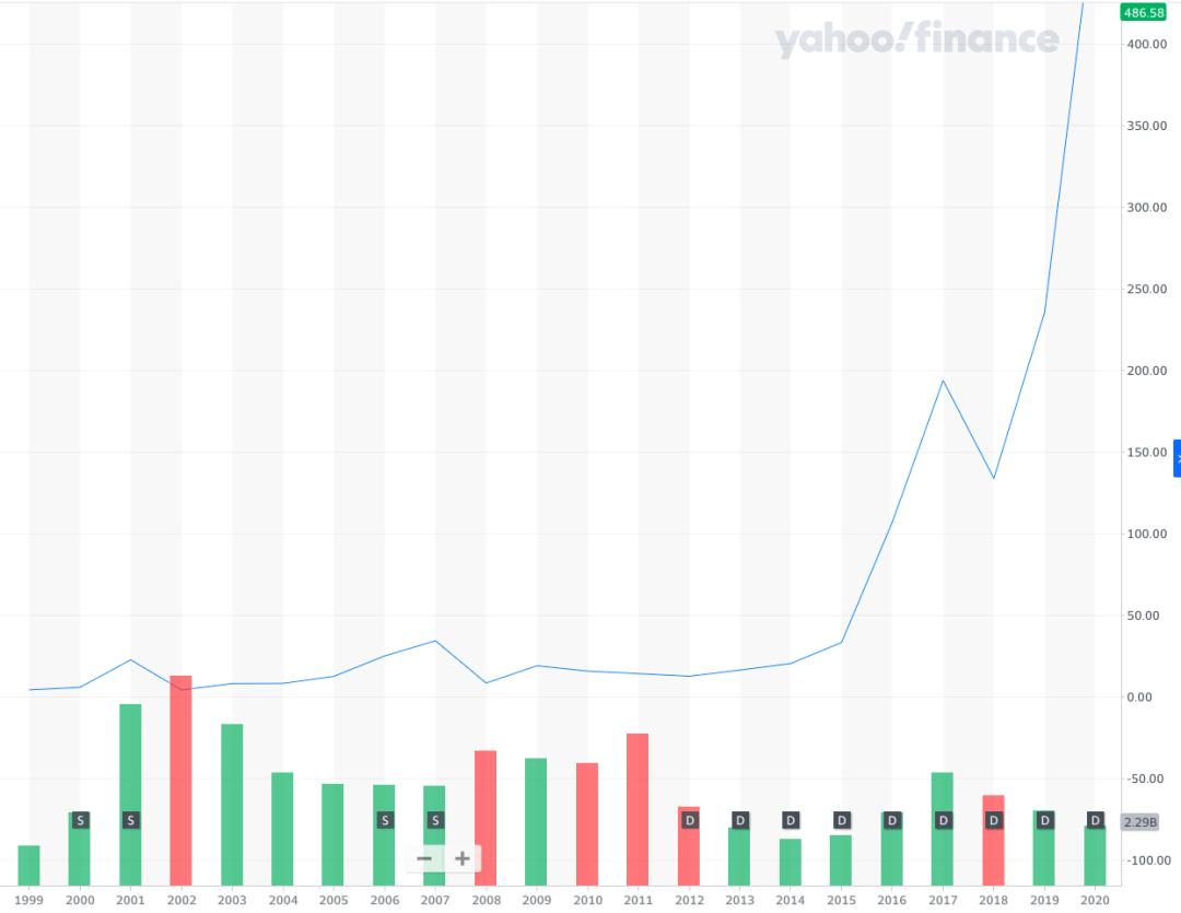 Nvidia历年股价变化 资料来源:Yahoo Finance