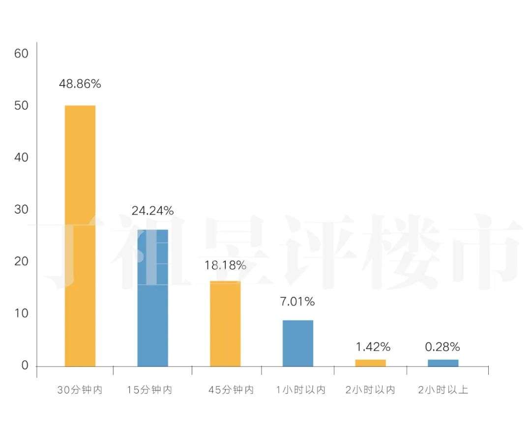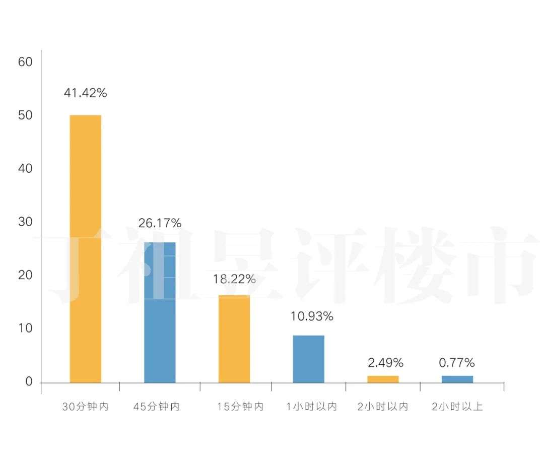 无论是租房未买房家庭还是租房已买房家庭,租住地点到工作地点的通勤时间基本都在45分钟以内,其中30分钟以内是最高选择。