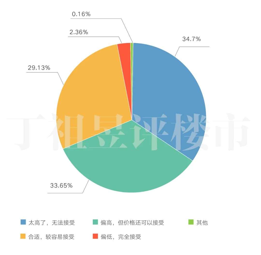 在房价问题上34.7%受访家庭认为现在房价太高了无法接受,33.65%家庭表示偏高,但价格还可以接受。
