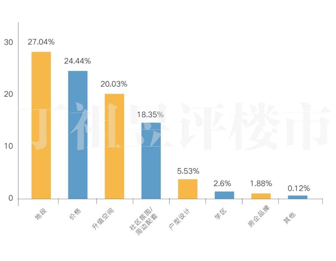 在买房考虑的要素中“地段”、“价格”、“升值空间”依然是最重要的三项因素,这一点与7月的问卷结果一致。