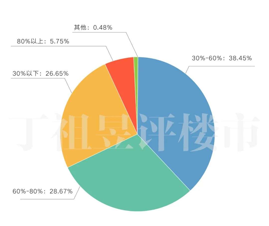 同时,已买房的家庭租金占收入比较高于未买房的家庭,在已买房的受访家庭中,租金占收入比选项30-60%最高,为38.45%,其次为60-80%,占28.67%,30%以下排第三,约26.65%。