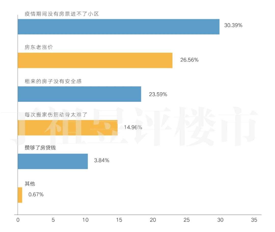 在租房已买房家庭中“疫情期间没有房进不了小区”的选择是最多的,其次是“房东老涨价”。
