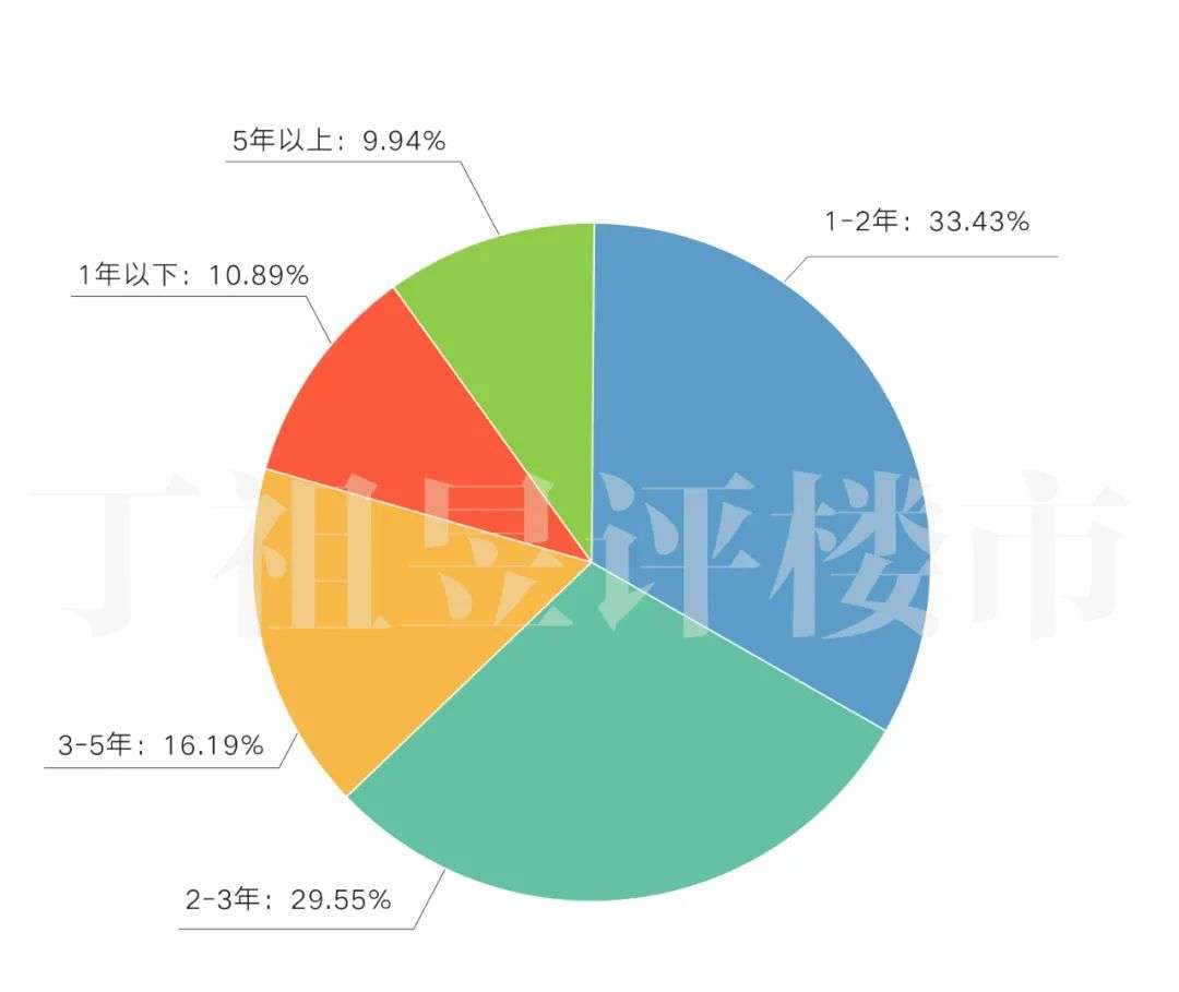 在租房未买房受访家庭中,大部分的租房时间都在1-5年之间,占比为79.17%,其中,1-3年的占比最高62.98%,5年以上及1年以下的人群也分别有9.94%及10.89%的占比。