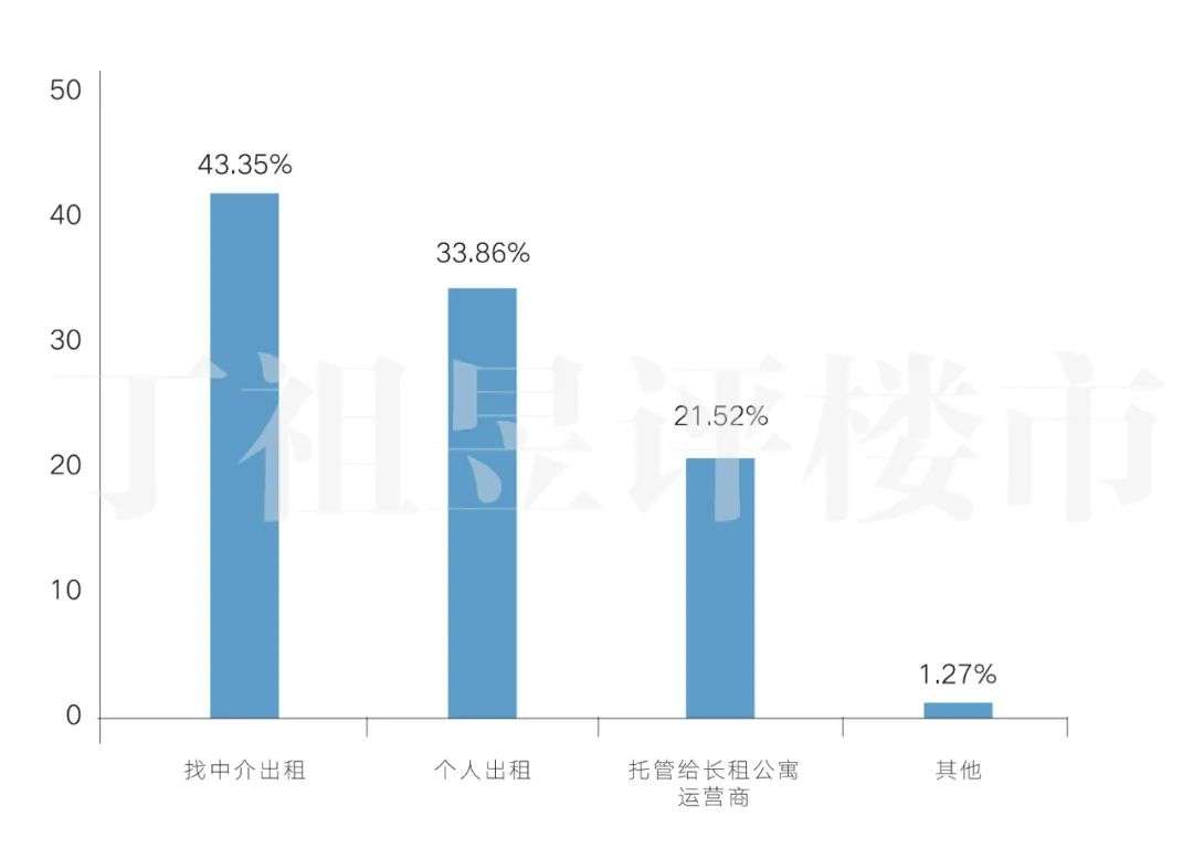 有意思的是,在长租公寓频频暴雷的当下,有43.35%的房东选择了找中介出租自己的房子,其次是个人出租,占33.86%,继续选择托管给长租公寓运营商的仅占21.52%。