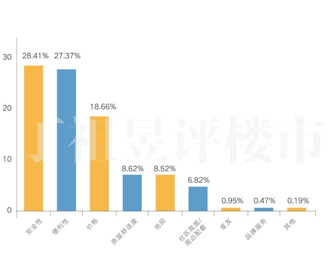 在租房过程中首要考虑的因素一项中,“安全性、便利性、价格”成为了最重要的前三项,但对于不同的受访家庭来说,其排序不太一样,对于租房未买房家庭来说,安全性是第一位的,其次是便利性,最后是价格。而对租房已买房家庭来说便利性是第一位的,其次是价格,最后才是安全性。