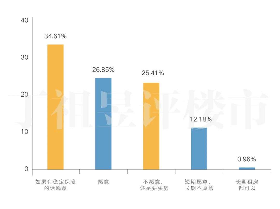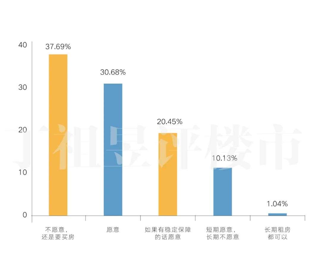 在“未来3-5年是否愿意一直租”选项中,37.69%租房未买房家庭坚决表示:不愿意,还是要买房,愿意长期租房的选项仅为1.04%。而租房已买房家庭中,表示不愿意的占25.41%,明显低于租房未买房家庭。